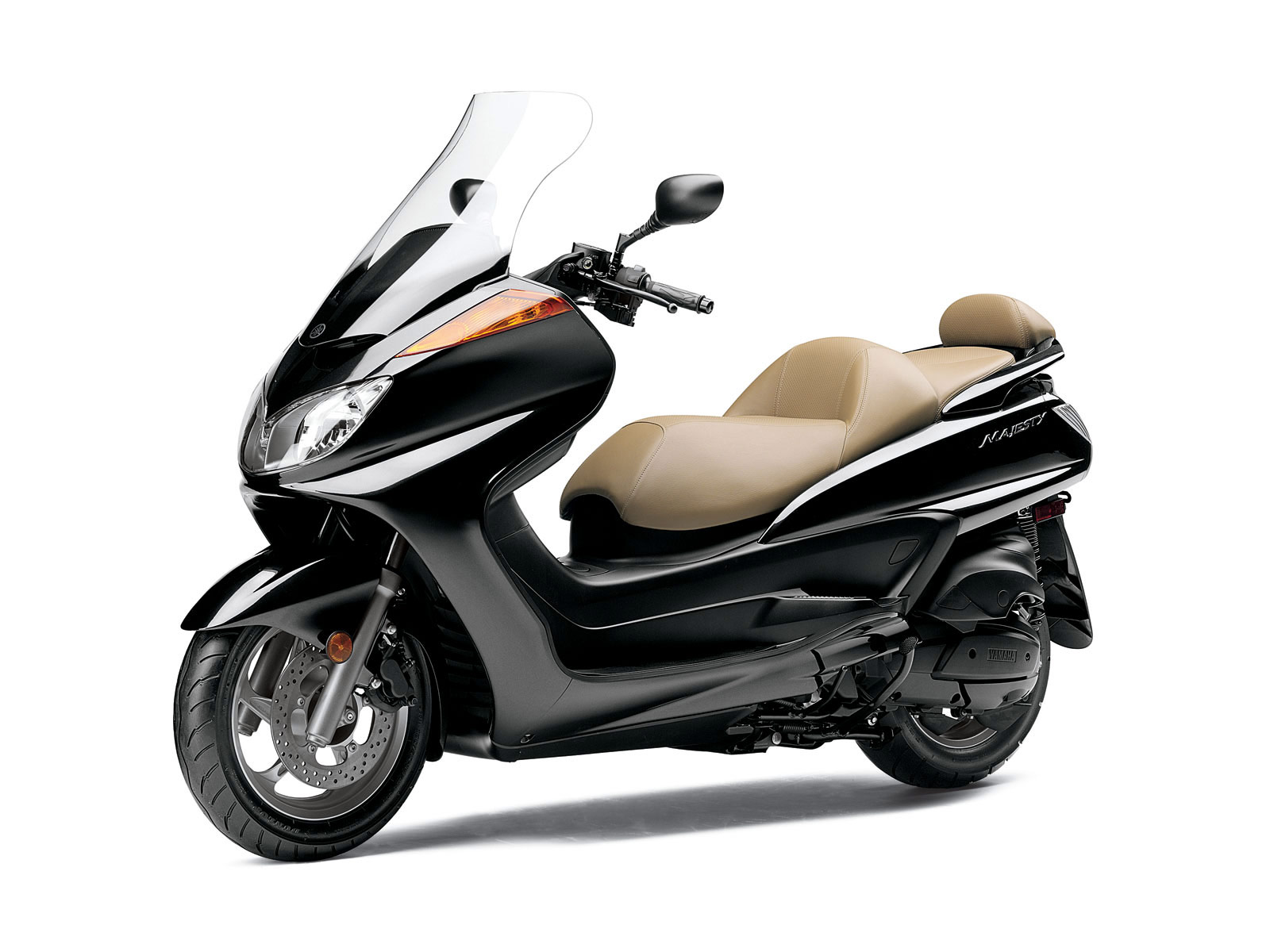 The 2012 Yamaha Majesty, one of the 2 maxi-scooters in our line-up. The 395cc Majesty pumps out the power of a motorcycle with the convenience and comfort of a scooter. Offering a fully automatic transmission, great weather protection, and tons of room for a passenger and gear, the 2012 Majesty breaks the transitional scooter mold and is fully highway capable.